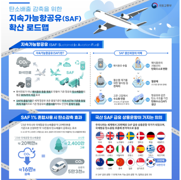 또한, SAF 혼합 의무와 함께 생산·구매 비용 부담 완화 및 설비 투자 지원 등을 통해 SAF 시장 선점을 위한 혜택을 강화하는 방안도 논의될 예정이다.