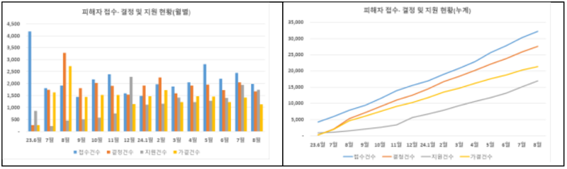위원회는 2023년 6월 1일 출범 이후 총 22,503건의 피해자 결정을 내렸다. 처리 결과를 보면, 가결 1,554건, 부결 506건, 적용 제외 299건, 이의신청 기각 172건으로 나타났다. 299건은 보증보험 및 최우선변제금으로 인해 보증금 전액 반환이 가능해 요건 적용 대상에서 제외되었으며, 506건은 요건 미충족으로 부결됐다.
